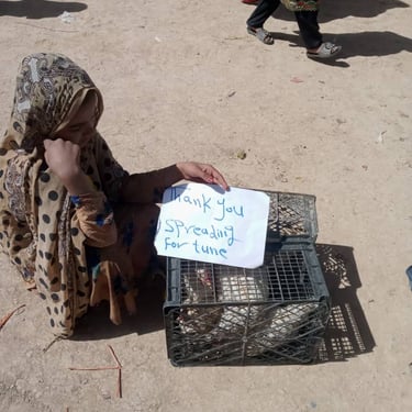 Spreading Fortune donated over 250 chickens to over 40 of the poorest families in Afghanistan. These chickens will produce eggs which can be sold to others in the area. Many chickens have died recently in Afghanistan, causing egg prices to spike. With this donation, we hope that these families will be able to begin earning an income in a sustainable way while also increasing supply of eggs to the rest of the community.
